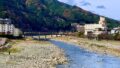 下呂温泉の中心部には、飛騨川沿いに足湯や食べ歩きスポットが点在しており、リードを付ければ犬連れで歩けるエリアも多いです。